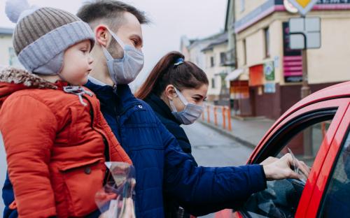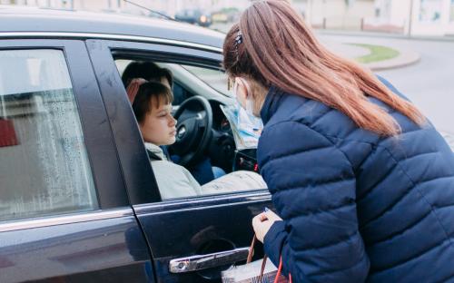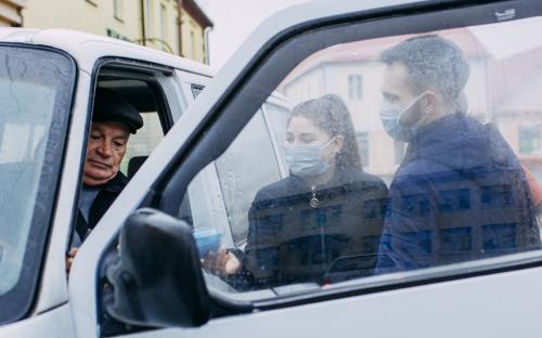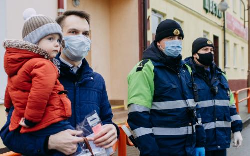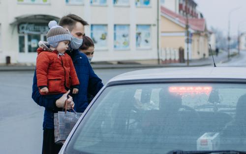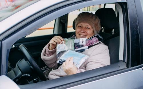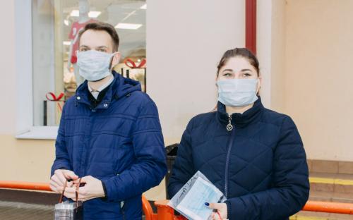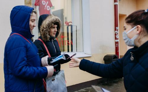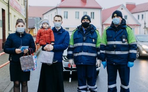 На одной из площадей города участники раздавали проходящим и проезжающим людям фликеры, защитные маски и молитвы водителя.