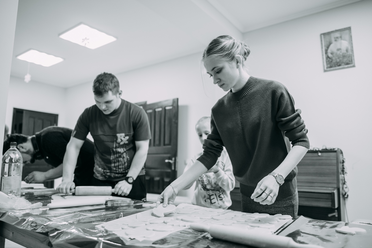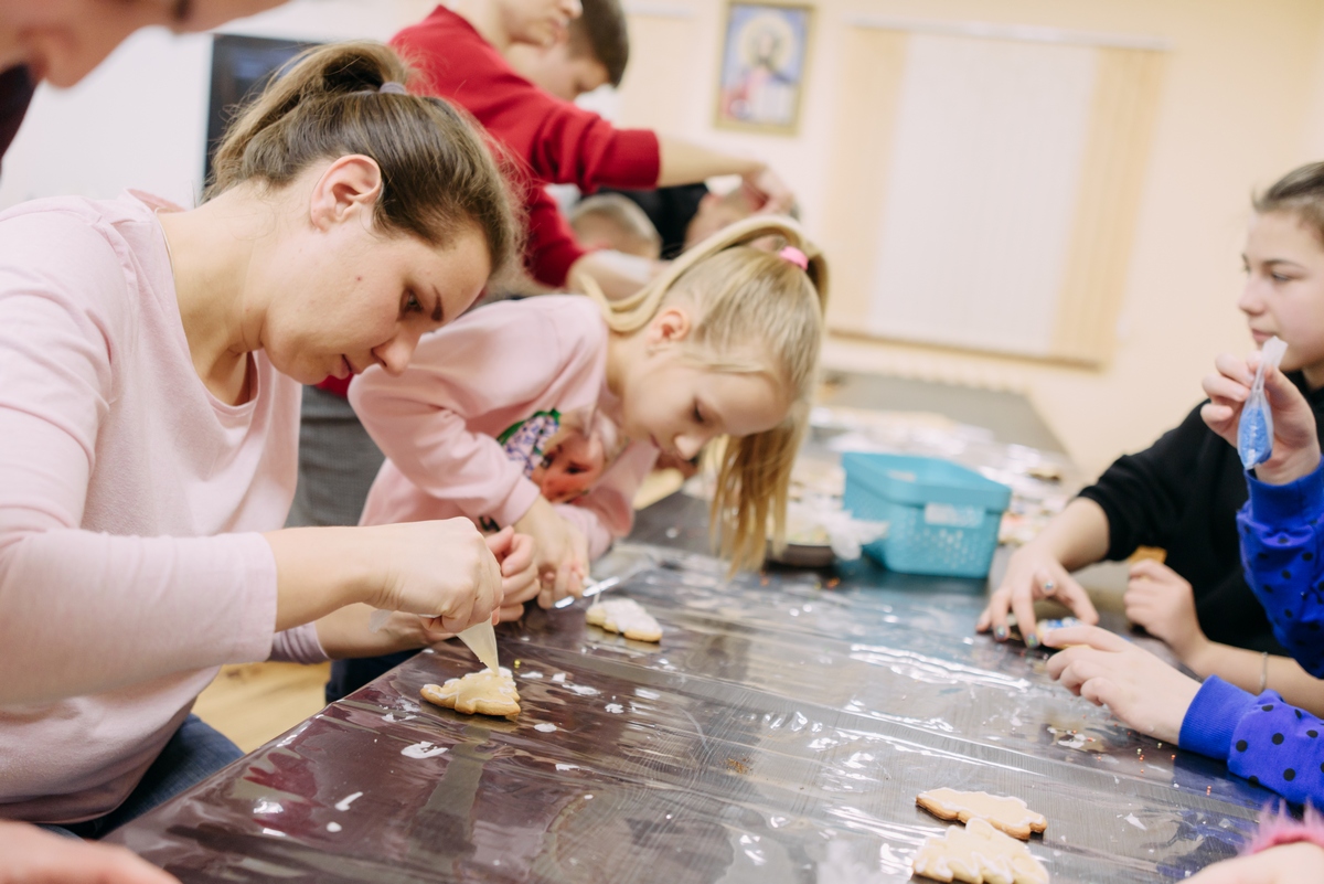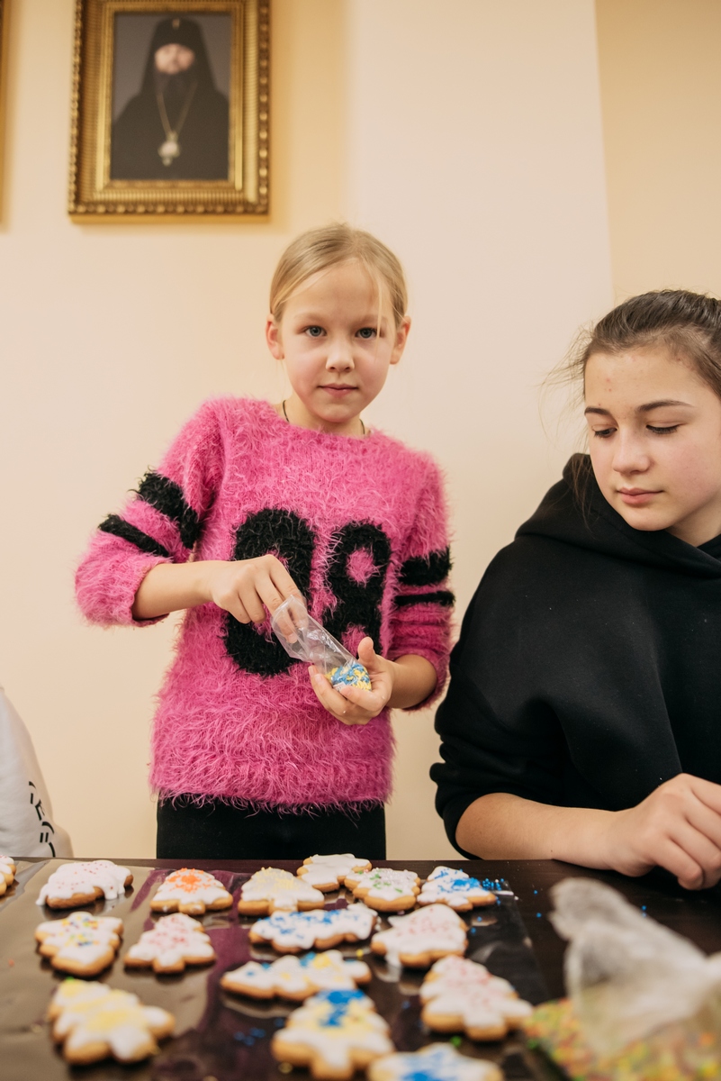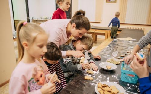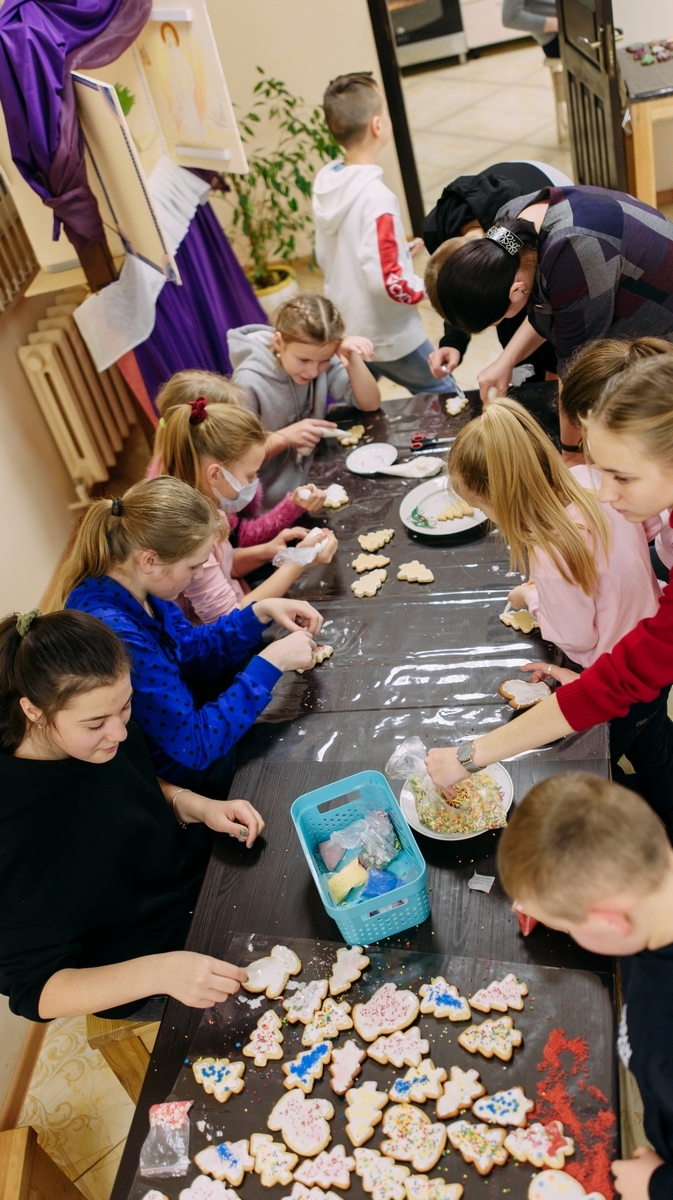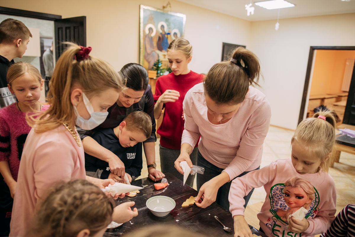 Молодежь прихода традиционно собирала пожертвования в ТЦ «Евроопт». Также в этом году воспитанники воскресной школы и участники молодежного клуба прихода изготовили рождественские имбирные пряники. В период святок собранные подарки были вручены многодетным и нуждающимся семьям.