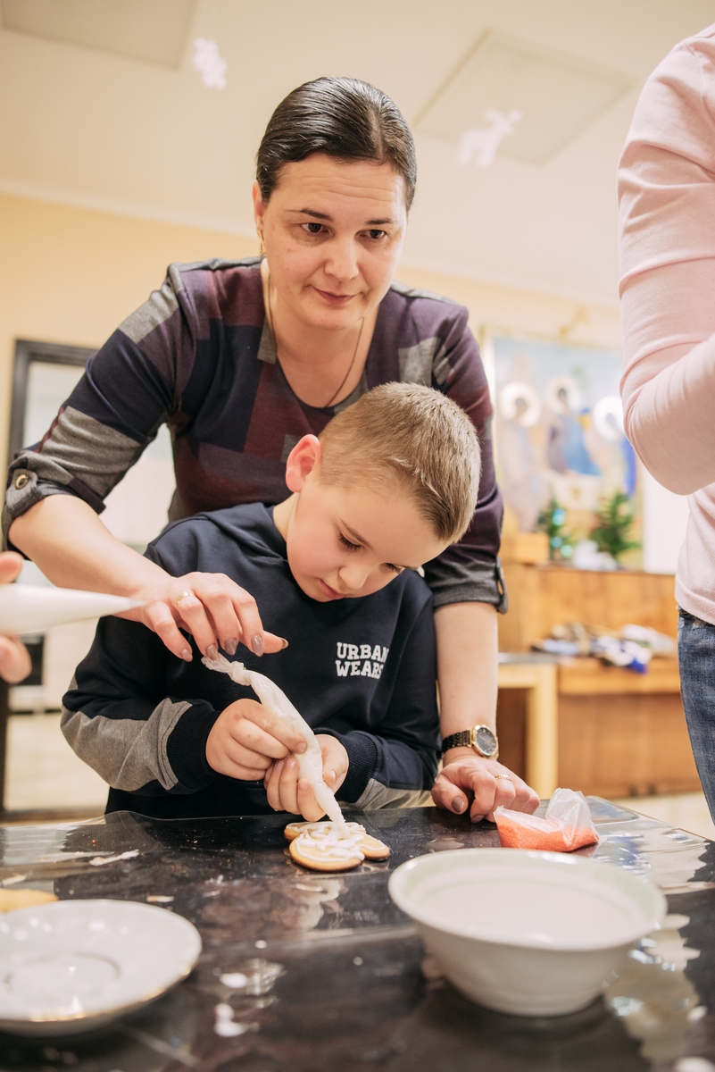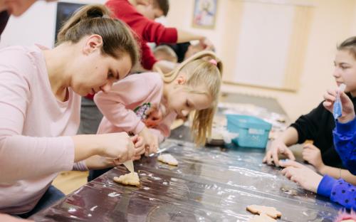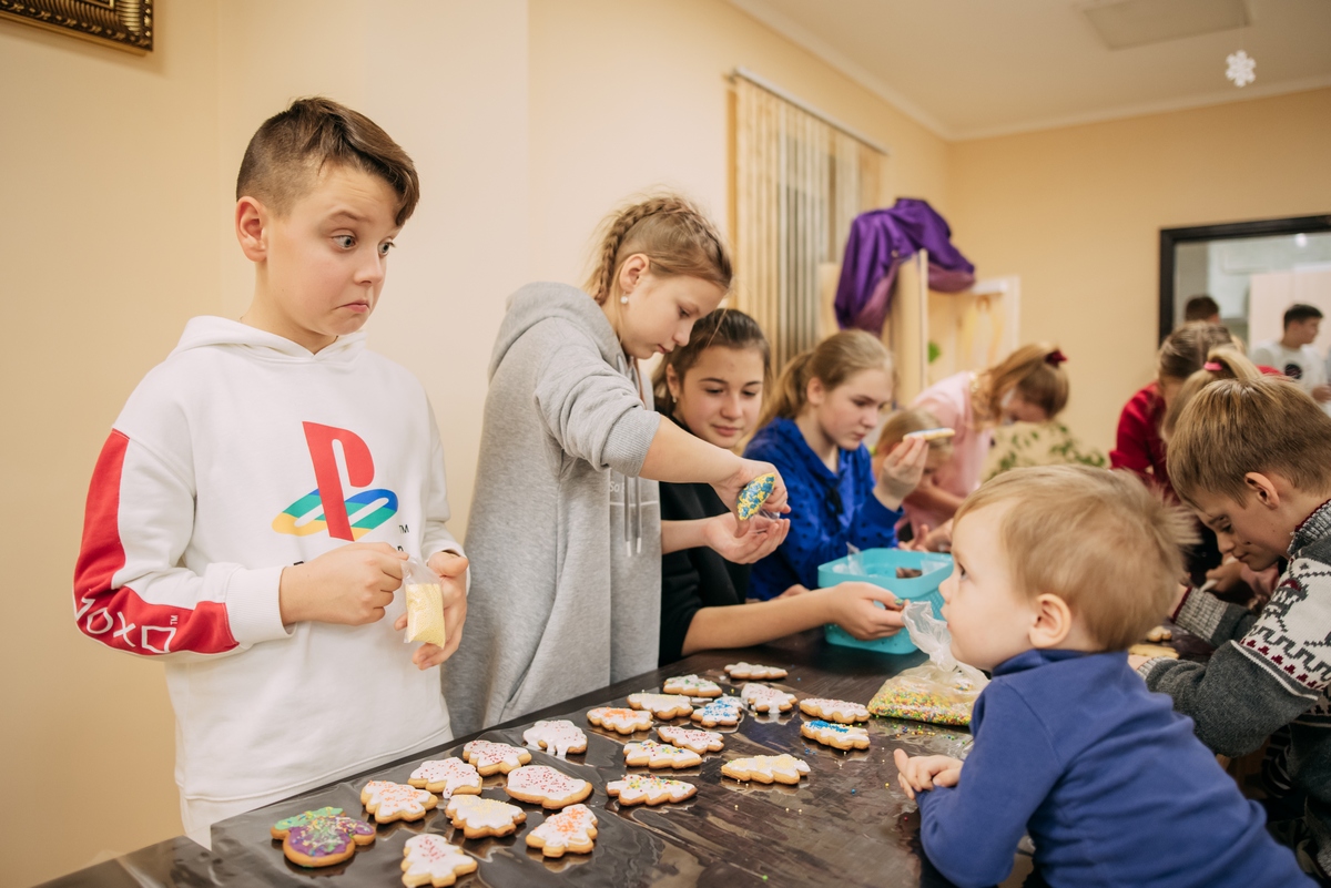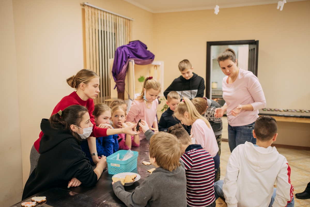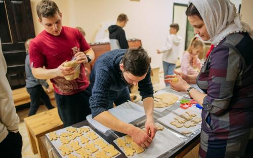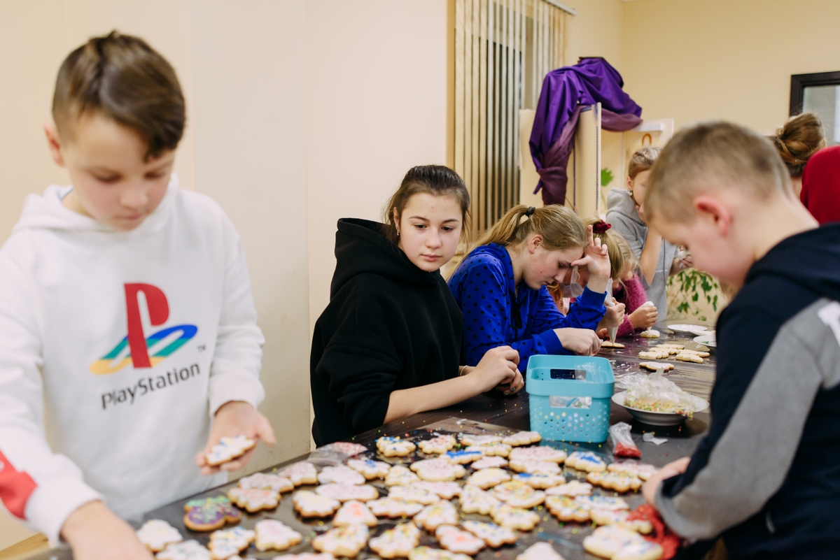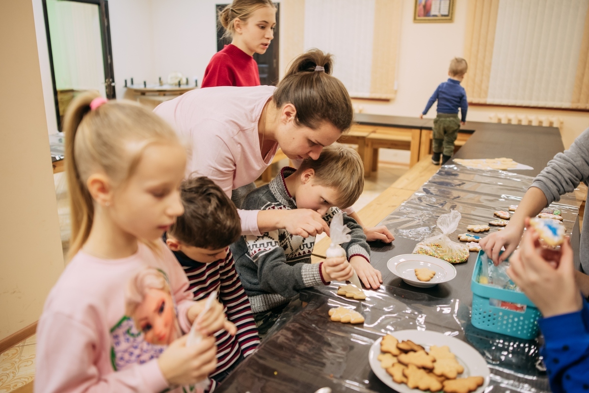 Молодежь прихода традиционно собирала пожертвования в ТЦ «Евроопт». Также в этом году воспитанники воскресной школы и участники молодежного клуба прихода изготовили рождественские имбирные пряники. В период святок собранные подарки были вручены многодетным и нуждающимся семьям.