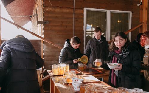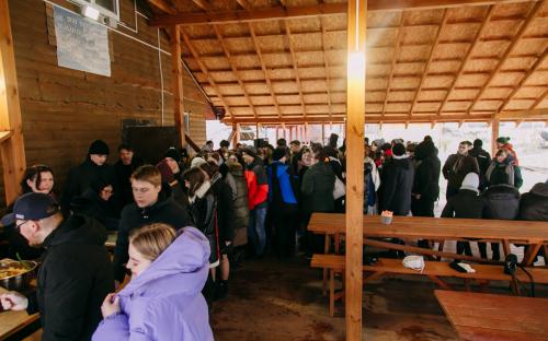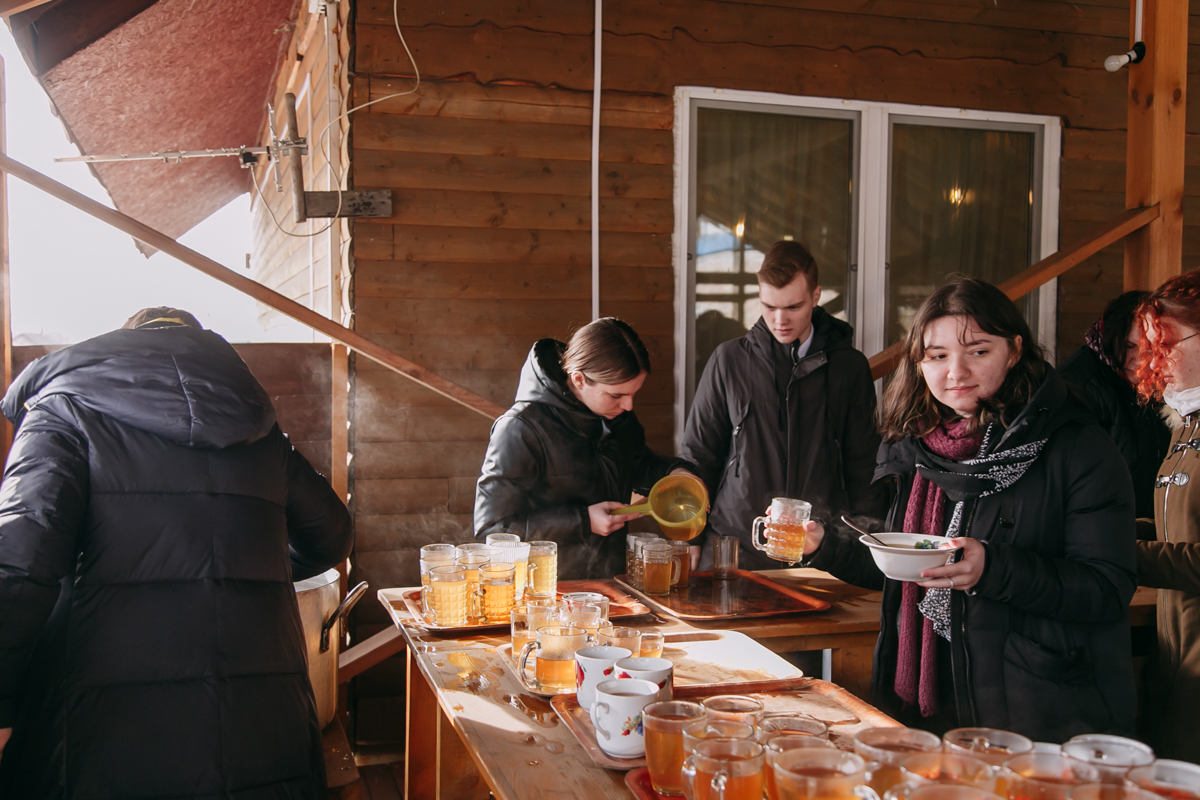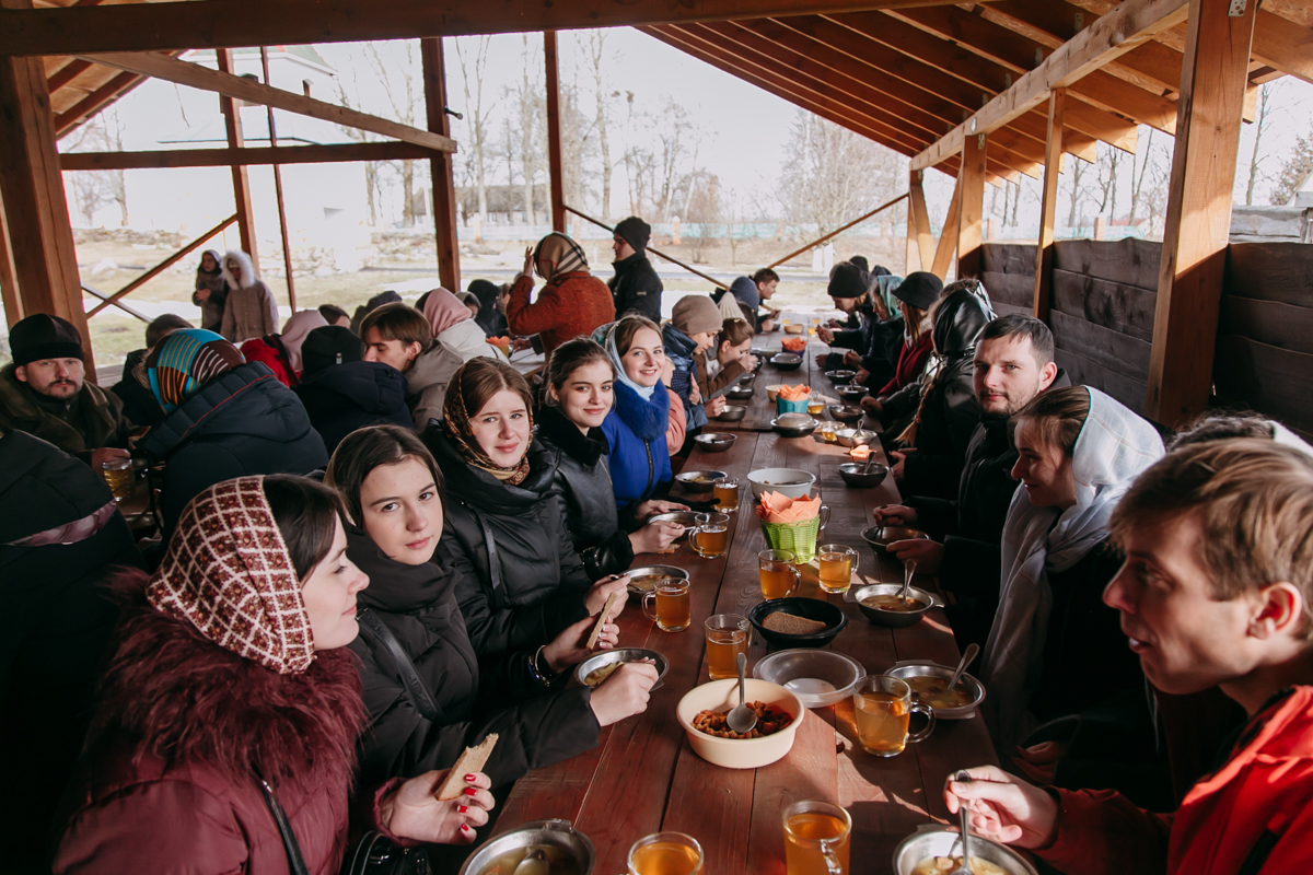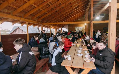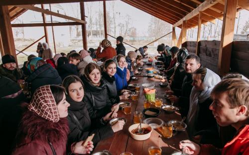 После живого и активного диалога с Митрополитом Вениамином молодые люди вернулись на прихрамовую территорию в Солтановщину, где братчики Несвижского Преображенского братства организовали праздничный ужин, после которого юноши и девушки пообщались друг с другом в неформальной обстановке.