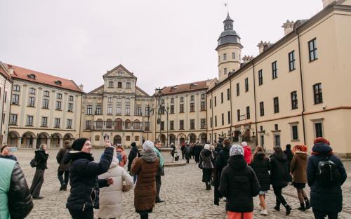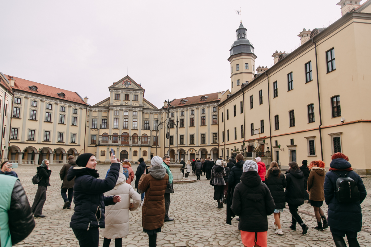 После обеда на приходской территории молодые люди отправились в Несвиж, где для них была организована экскурсия по Несвижскому замку.