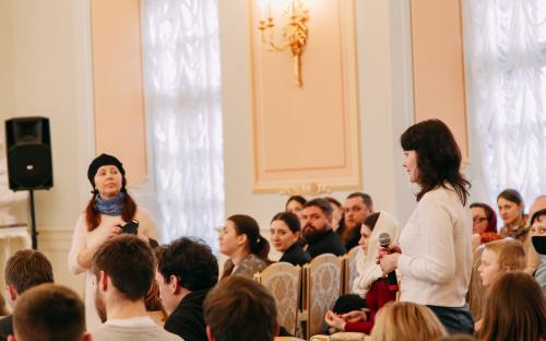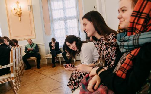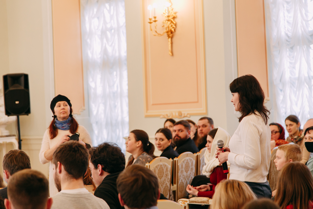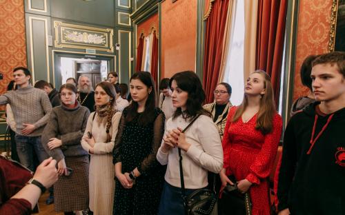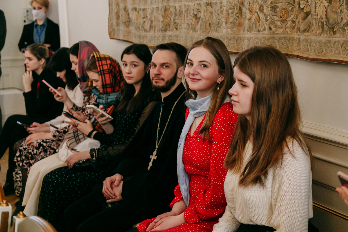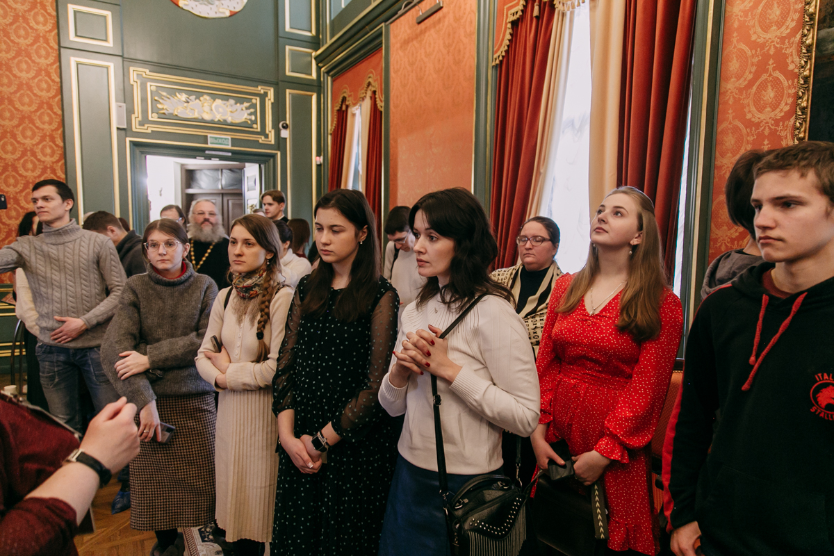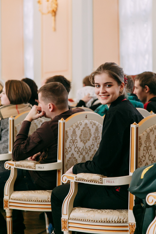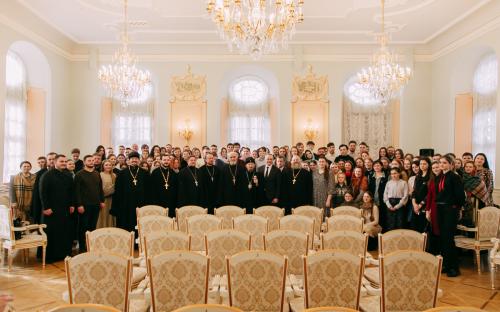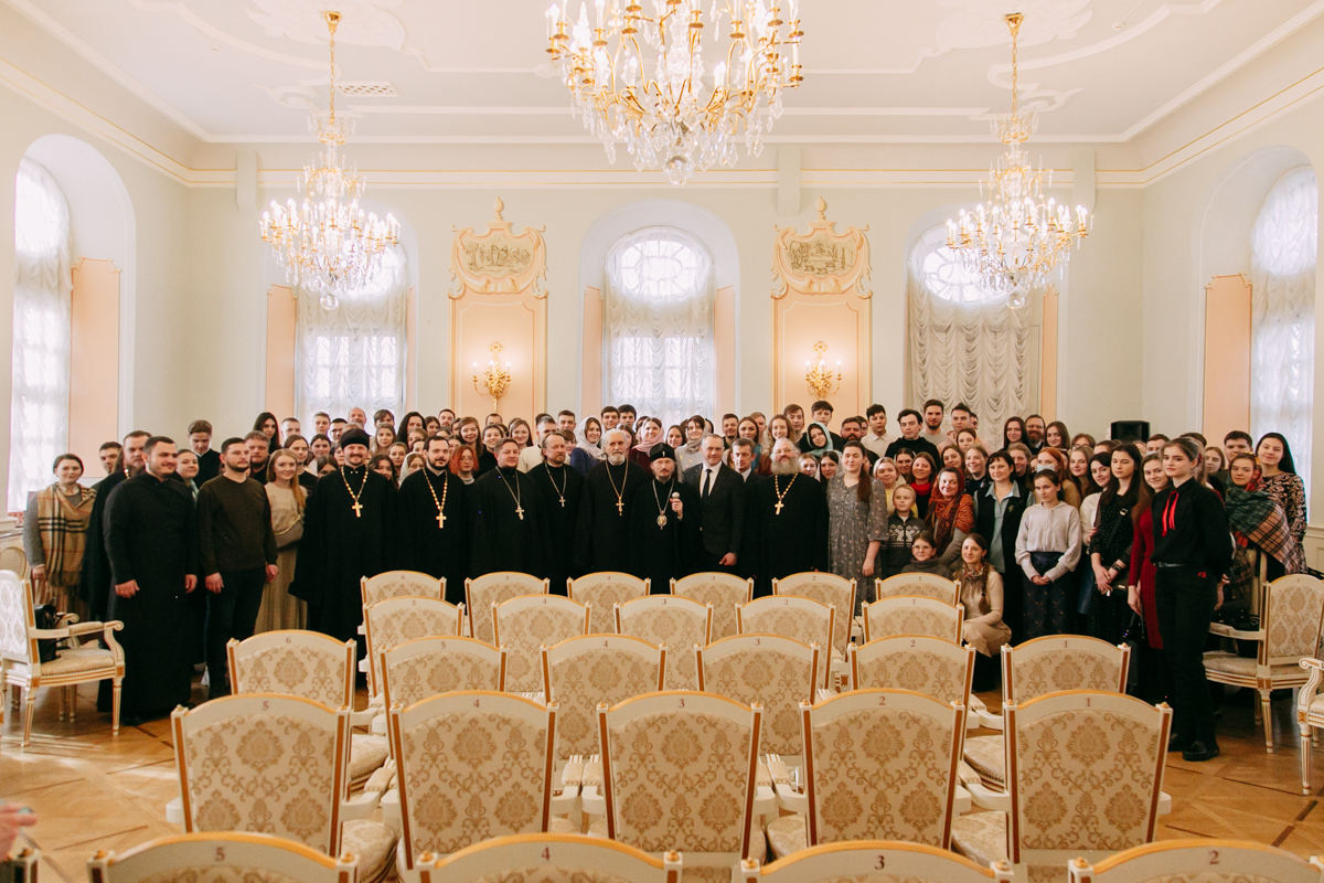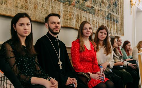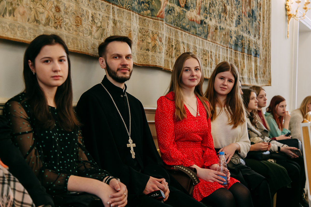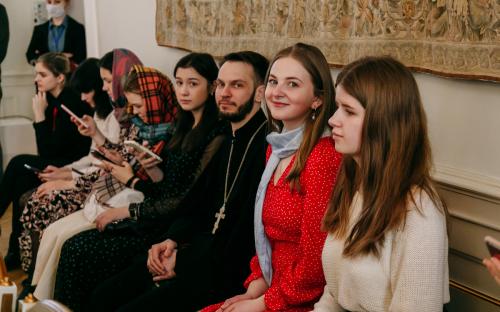 После экскурсии в театральном зале замкового комплекса состоялась встреча молодежи с Патриаршим Экзархом всея Беларуси митрополитом Минским и Заславским Вениамином, на которой юноши и девушки могли задать архипастырю волнующие их вопросы, которые были как личного, так и общего характера.