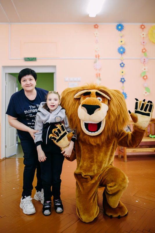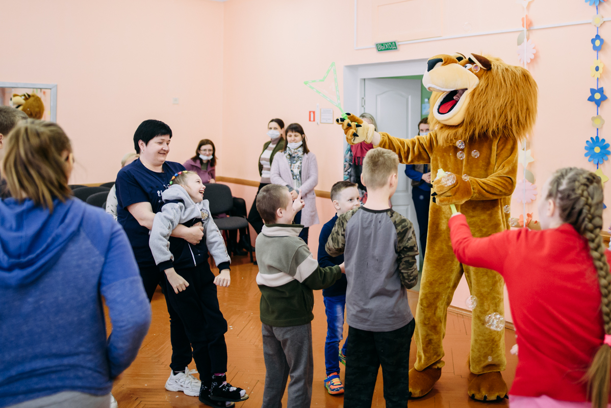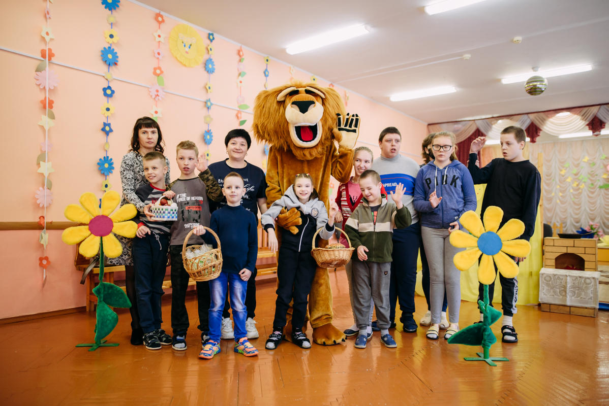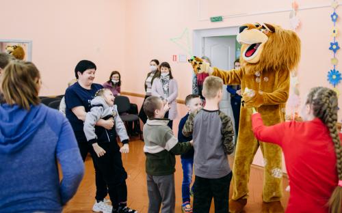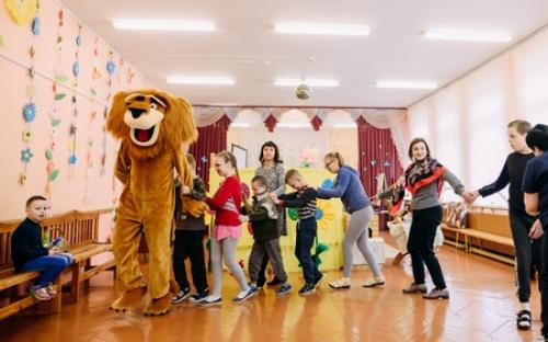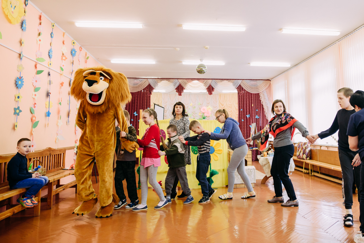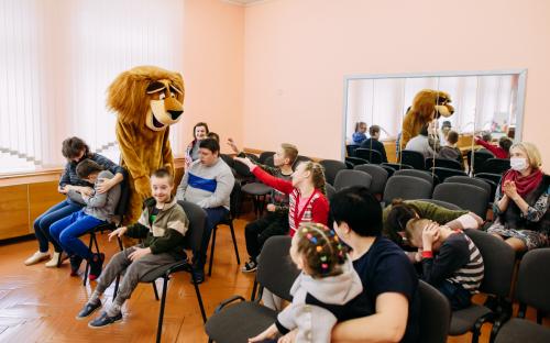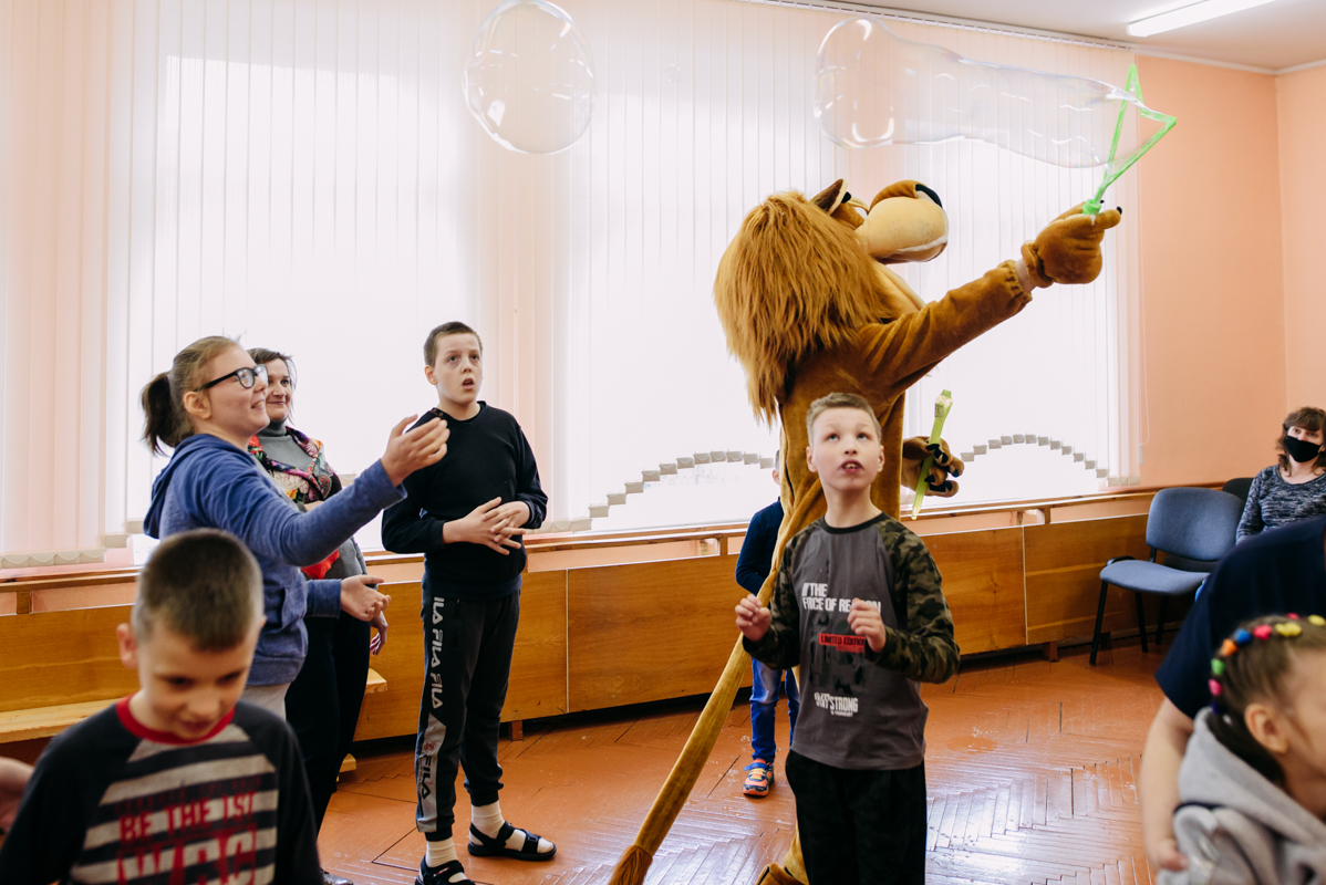 Ребята с увлечением посмотрели театральную зарисовку "Пасхальный колобок". Лев Алекс развлекал детей танцами и играми с мыльными пузырями. В свою очередь священник Николай Савицкий поздравил всех со Светлым Христовым Воскресением. В завершение всем были вручены сладкие подарки.
