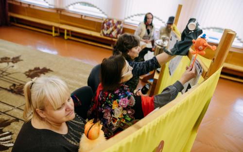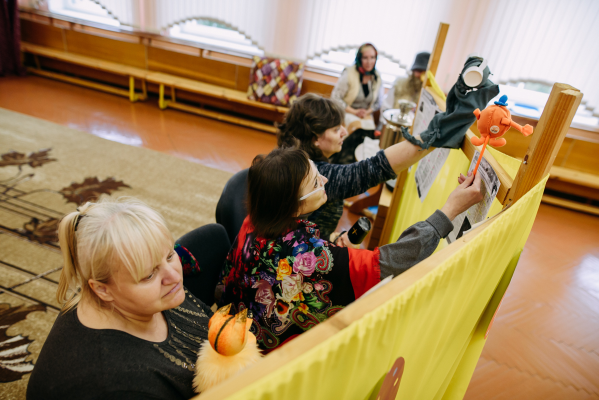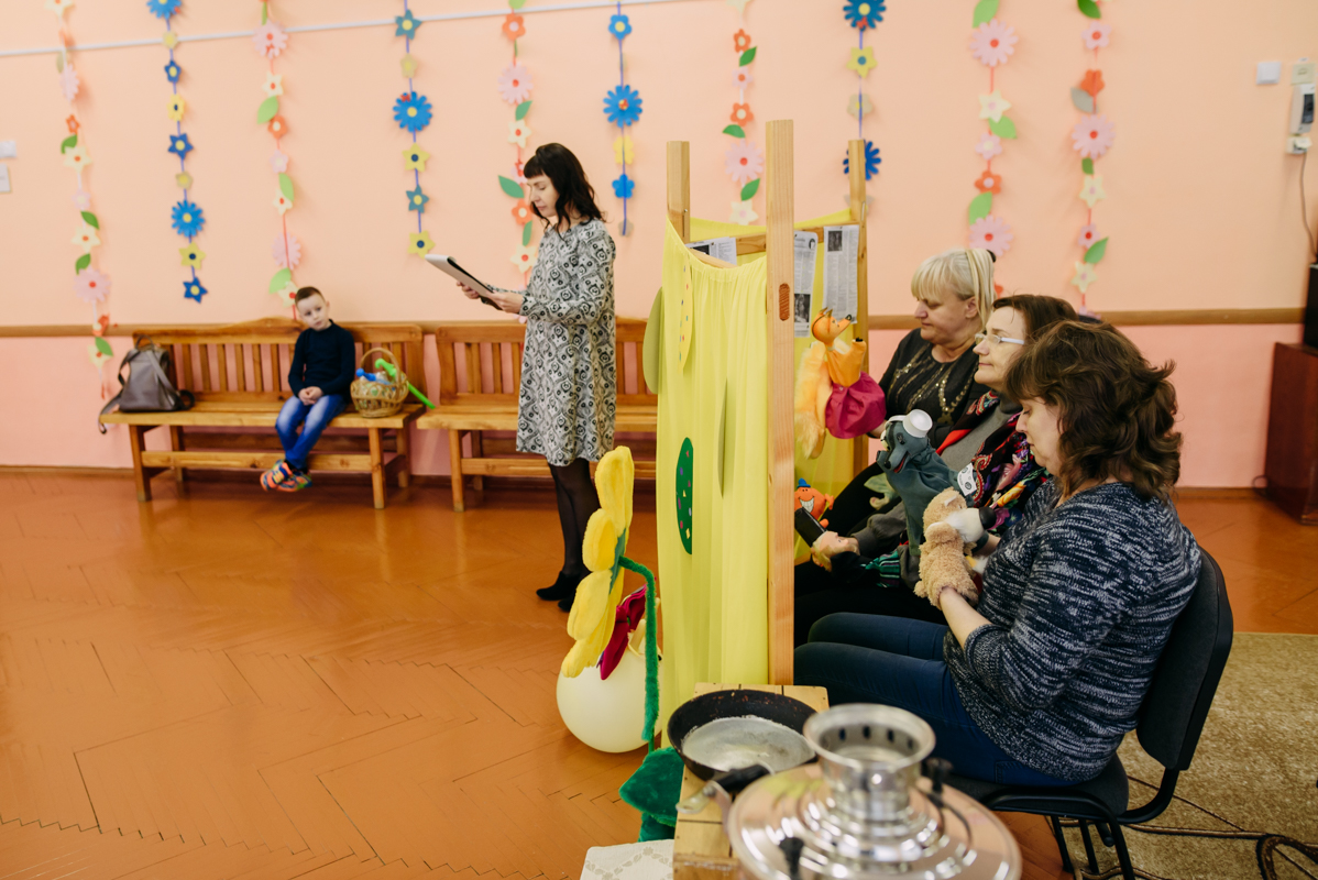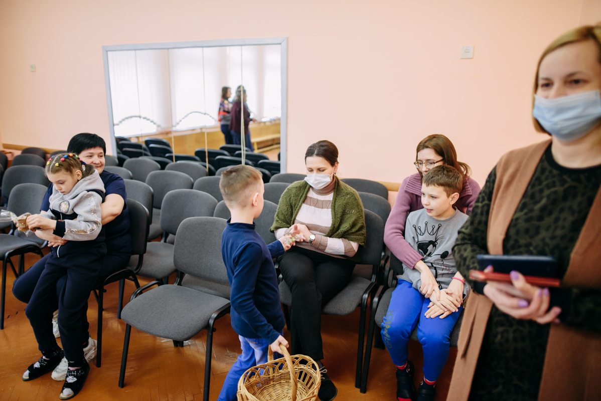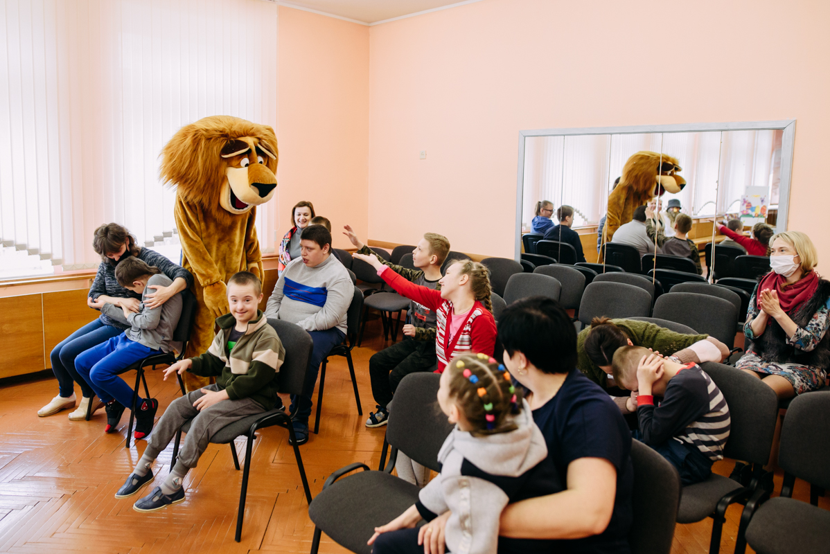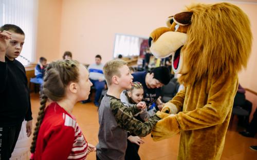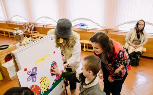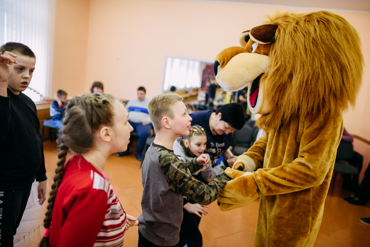 Ребята с увлечением посмотрели театральную зарисовку "Пасхальный колобок". Лев Алекс развлекал детей танцами и играми с мыльными пузырями. В свою очередь священник Николай Савицкий поздравил всех со Светлым Христовым Воскресением. В завершение всем были вручены сладкие подарки.