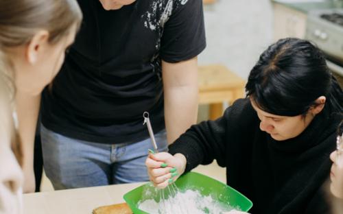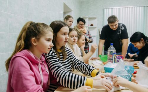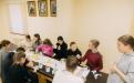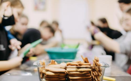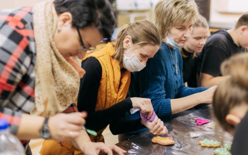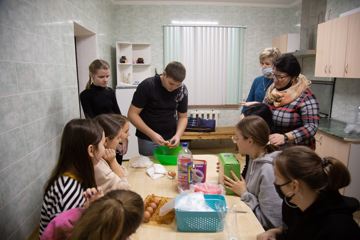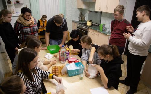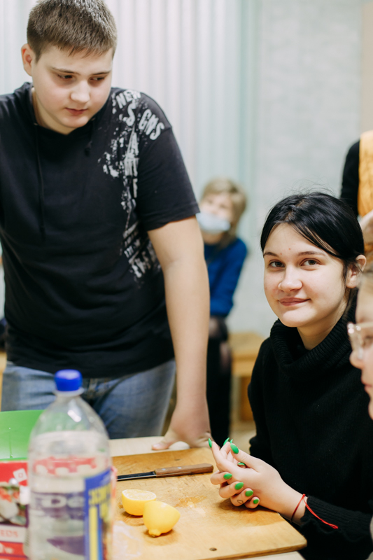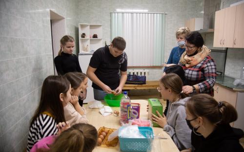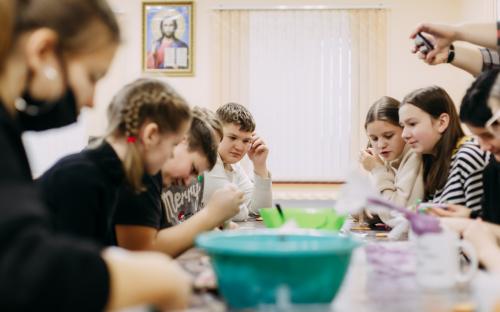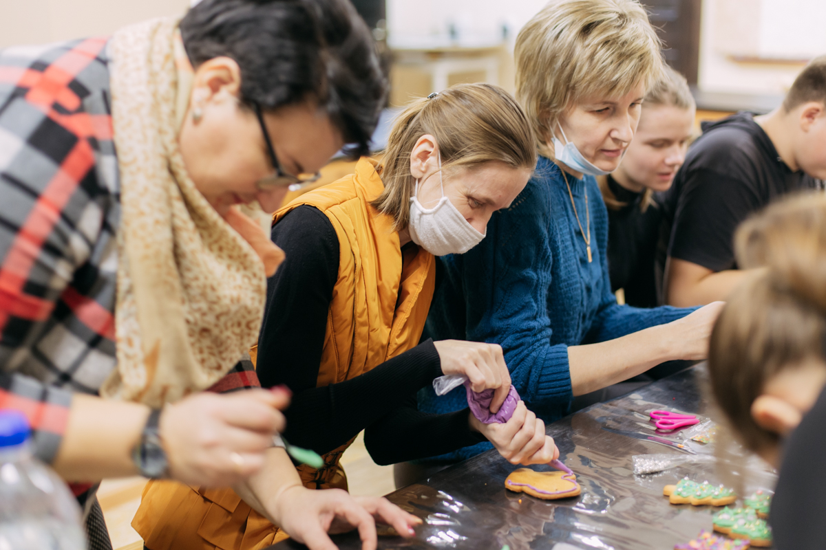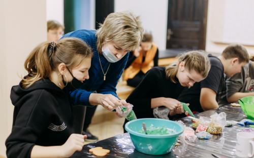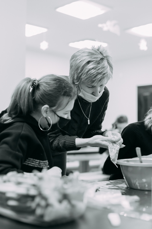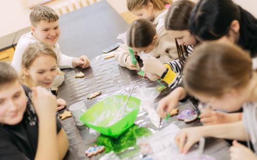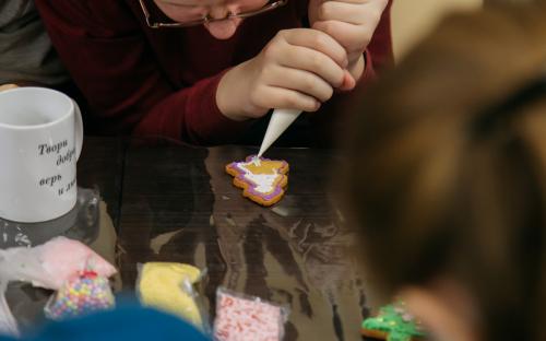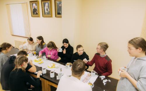 После посещения храма группа направилась в воскресную школу. Ребятам вместе с педагогами было предложен мастер-класс по изготовлению имбирных пряников, который провел священник Николай. Во время приготовления всем собравшимся священник рассказал о празднике Рождества Христова, его традициях, значении, о важности добрых дел и о Боге в нашей жизни.