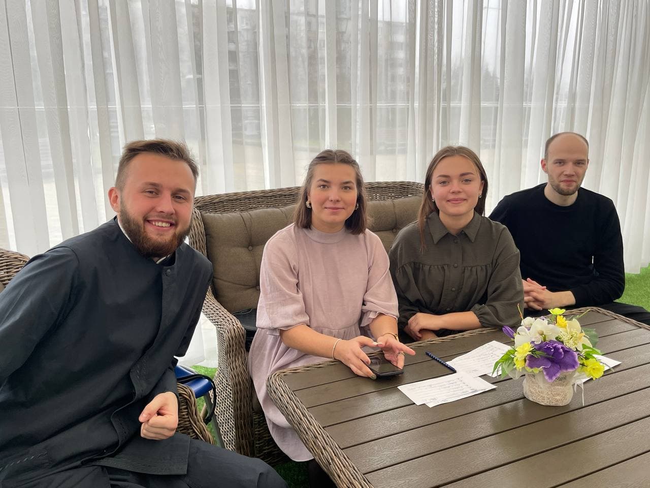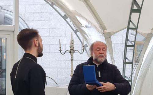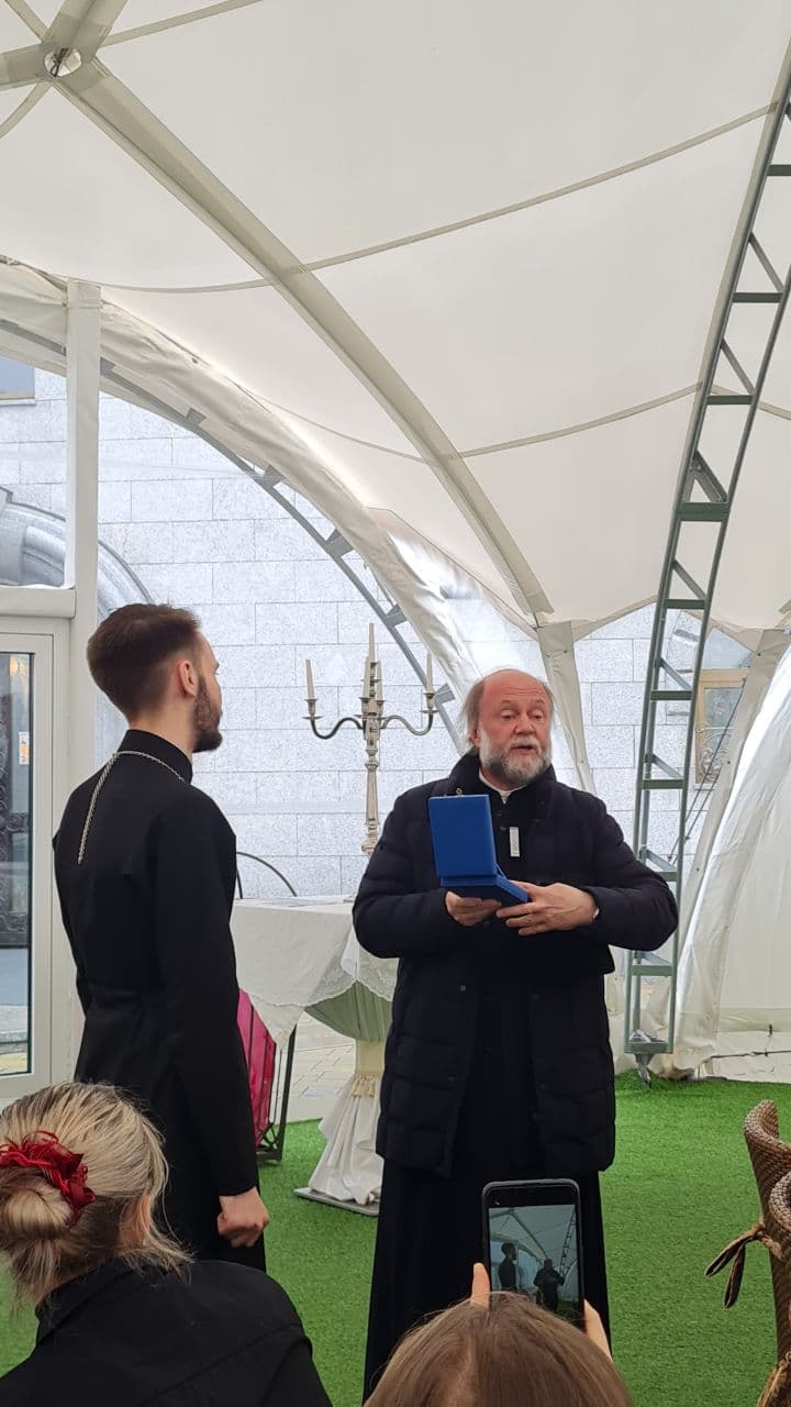 После богослужения и экскурсии молодых людей приветствовал настоятель прихода протоиерей Феодор Повный. От лица настоятеля Троицкого прихода г. Слонима протоиерея Димитрия Семухи в дар отцу Феодору была передана памятная Жировичская икона Божией Матери.