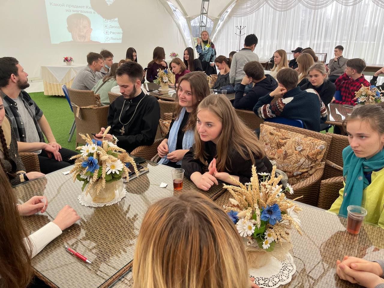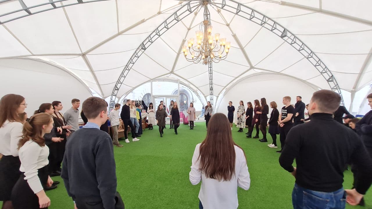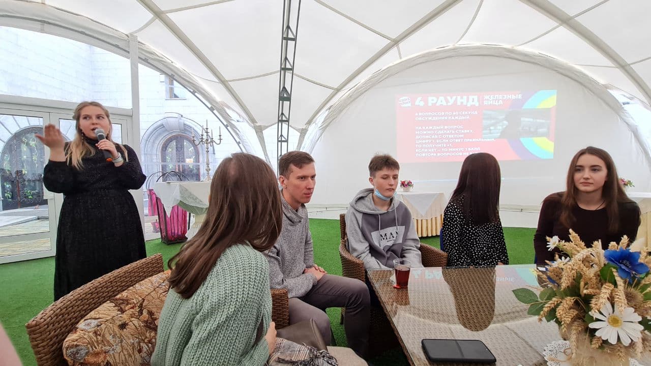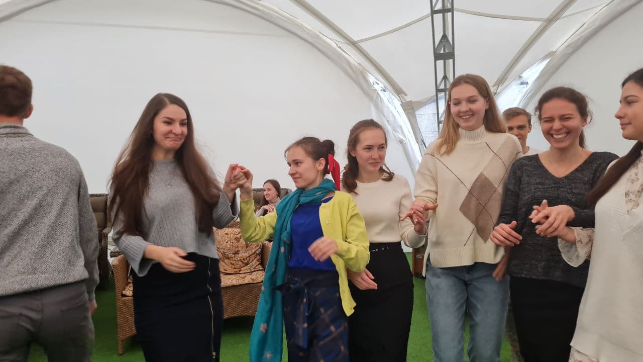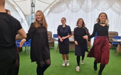 Для хорошего времяпровождения и более близкого знакомства молодежных движений ребята из «AGIOS» вместе со своим руководителем Николаем Комарчуком подготовили и провели для гостей интеллектуальную игру «Квиз-Плиз», мини-концерт и небольшой бал. Завершилась встреча обзорной экскурсией по городу-герою Минску и подарками от прихода храма Всех святых.
