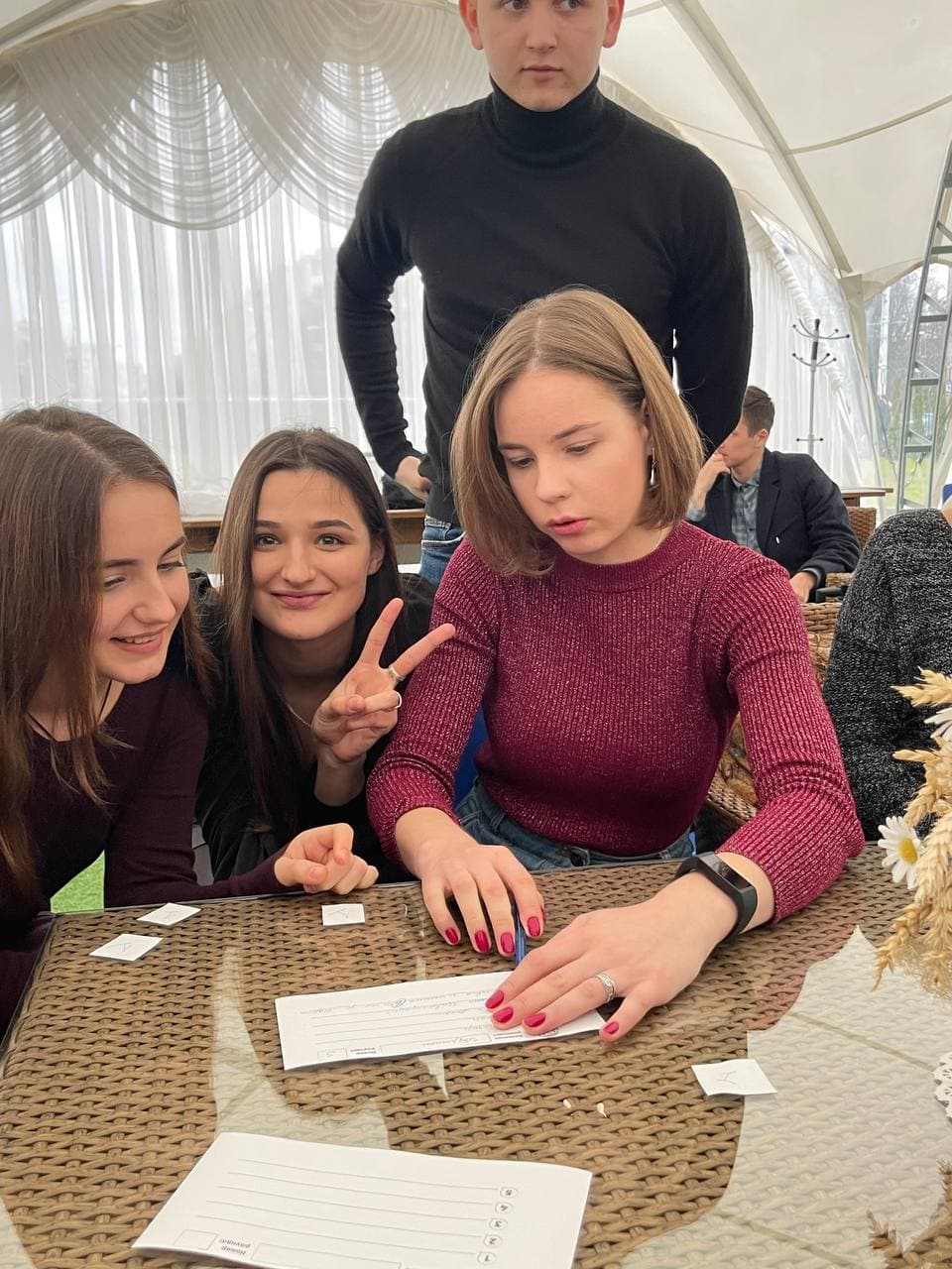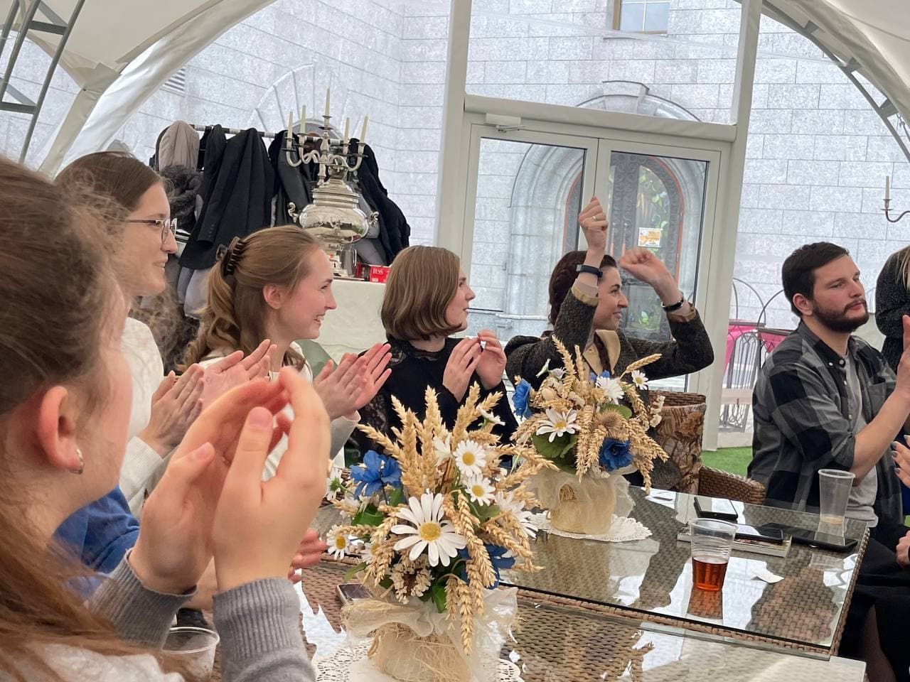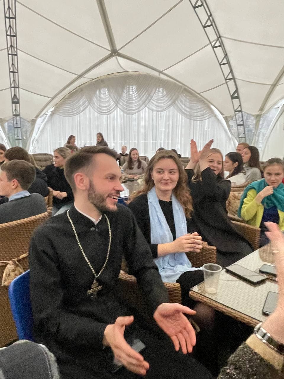 Для хорошего времяпровождения и более близкого знакомства молодежных движений ребята из «AGIOS» вместе со своим руководителем Николаем Комарчуком подготовили и провели для гостей интеллектуальную игру «Квиз-Плиз», мини-концерт и небольшой бал. Завершилась встреча обзорной экскурсией по городу-герою Минску и подарками от прихода храма Всех святых.