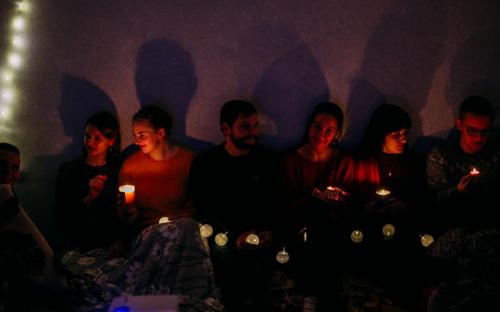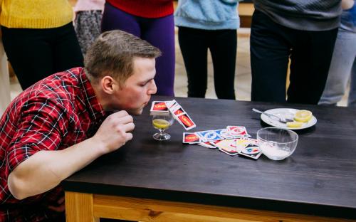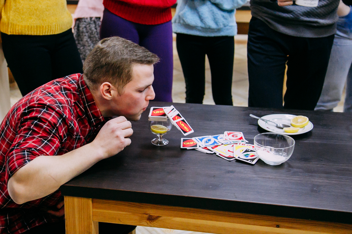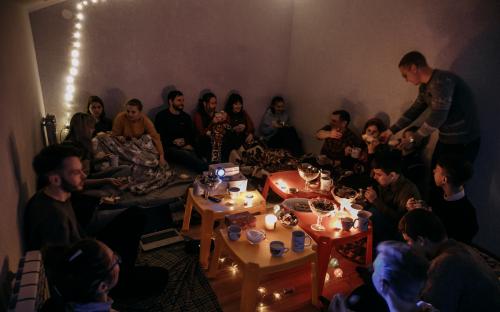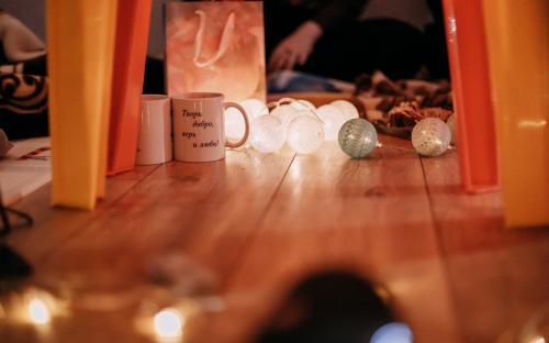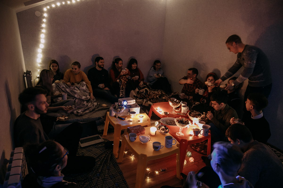 В этот раз ребята по возможности соблюдали дресс-код (новогодние свитера и носки, тем самым окунувшись в детство), ведь сама встреча прошла среди пледов и украшающих помещение огней. За вечер участники молодежного клуба "Симфония" поздравили осенних именинников, поучаствовали в различных конкурсах и играх, после чего в теплой атмосфере среди свечей и огней, употребляя вкусняшки и какао, прочитали свои любимые стихи. Завершился вечер исполнением песен под гитару и караоке.