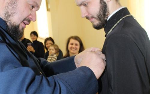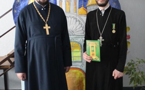 По благословению архиепископа Новогрудского и Слонимского Гурия протоиерей Димитрий Семуха за усердные труды во славу Матери-Церкви вручил священнику Николаю Савицкому медаль преподобного Елисея Лавришевского.