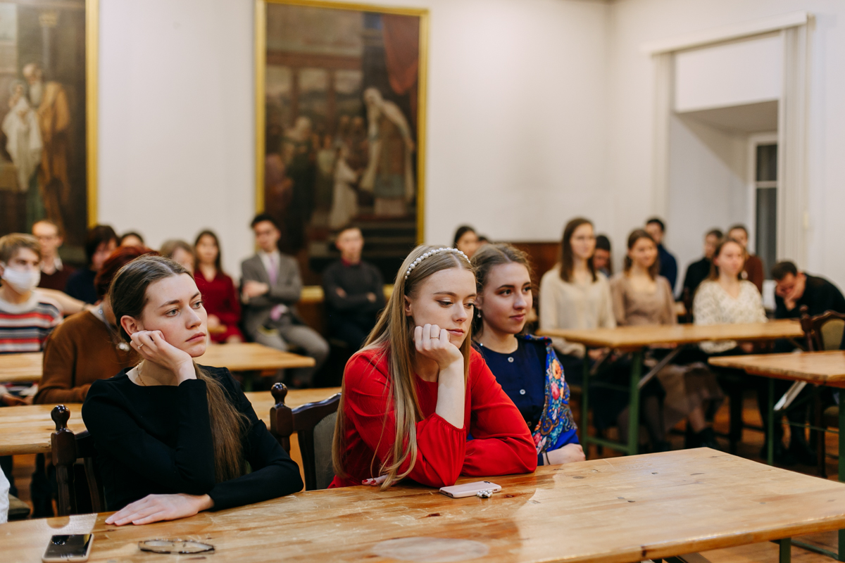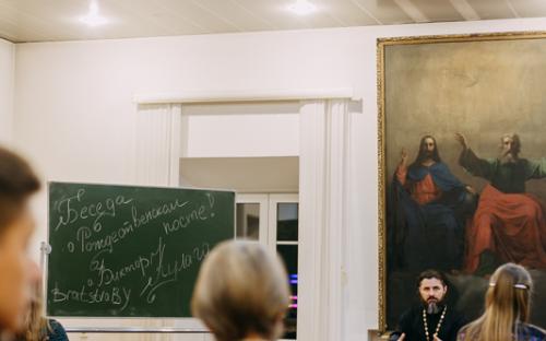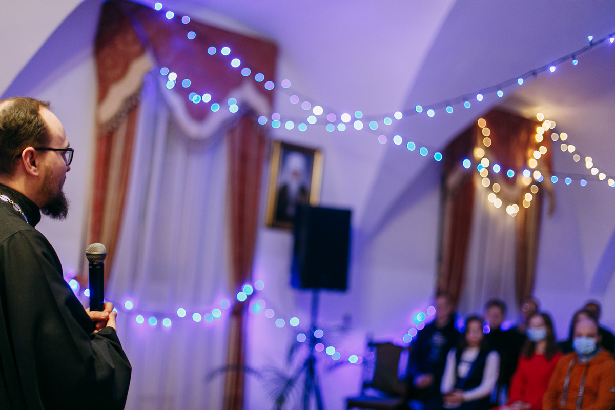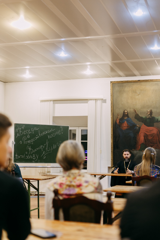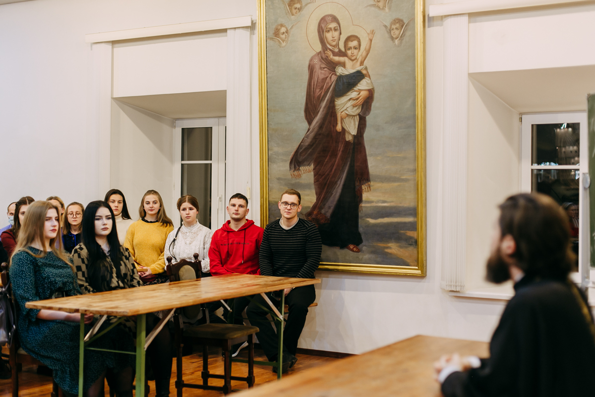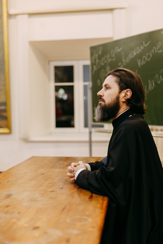 Вечер начался с беседы о посте с проректором по воспитательной работе Минской духовной академии иереем Виктором Кулагой. Затем с напутственным словом выступил духовник Братства в честь святого апостола Иоанна Богослова иерей Дмитрий Нецветаев.