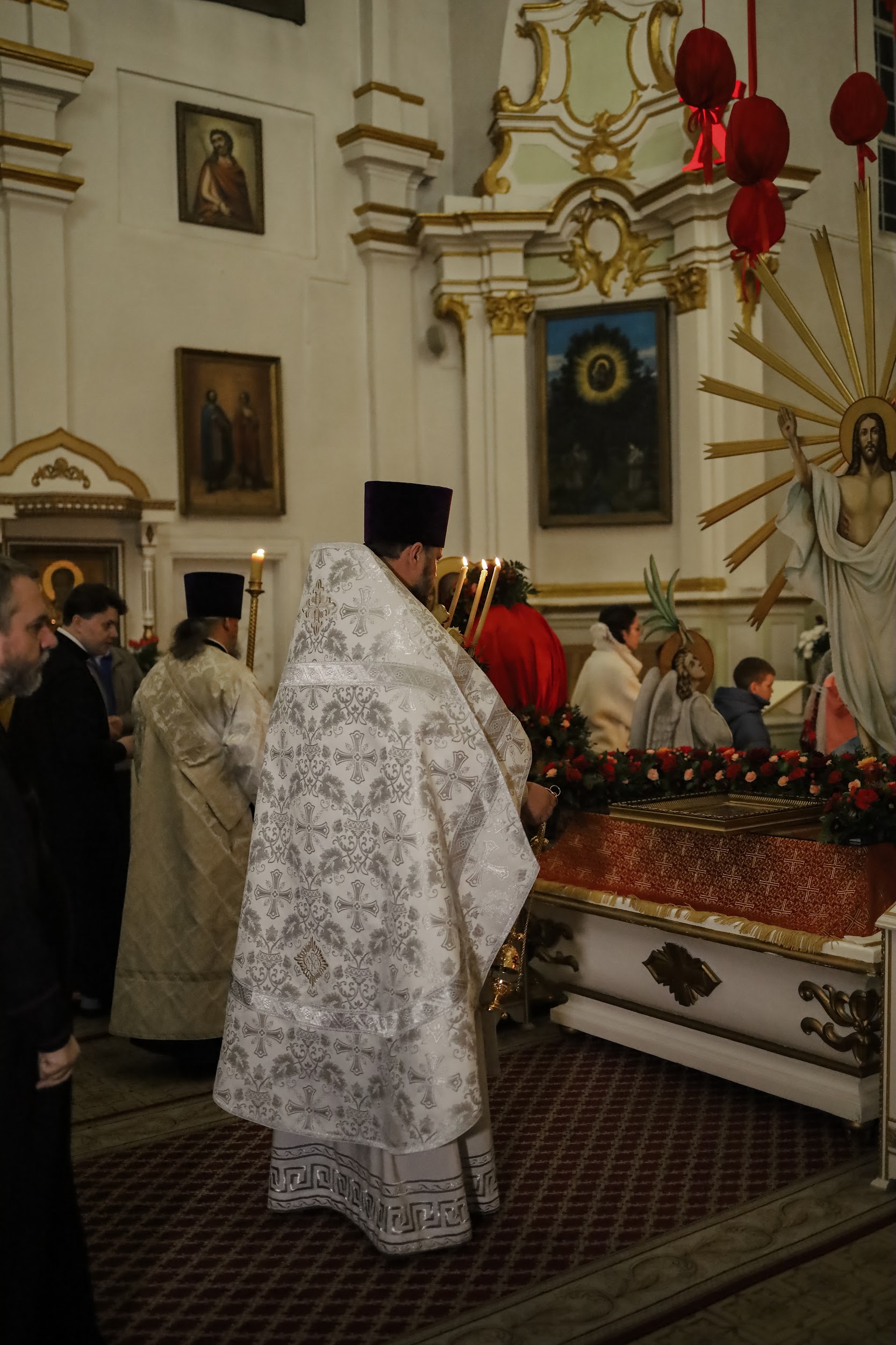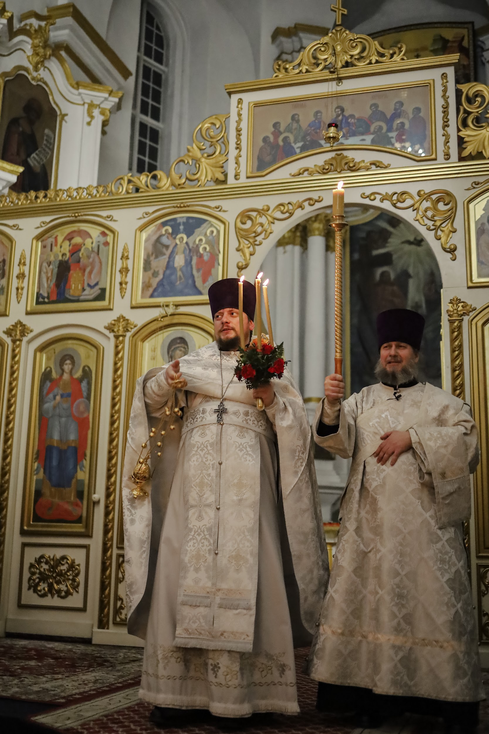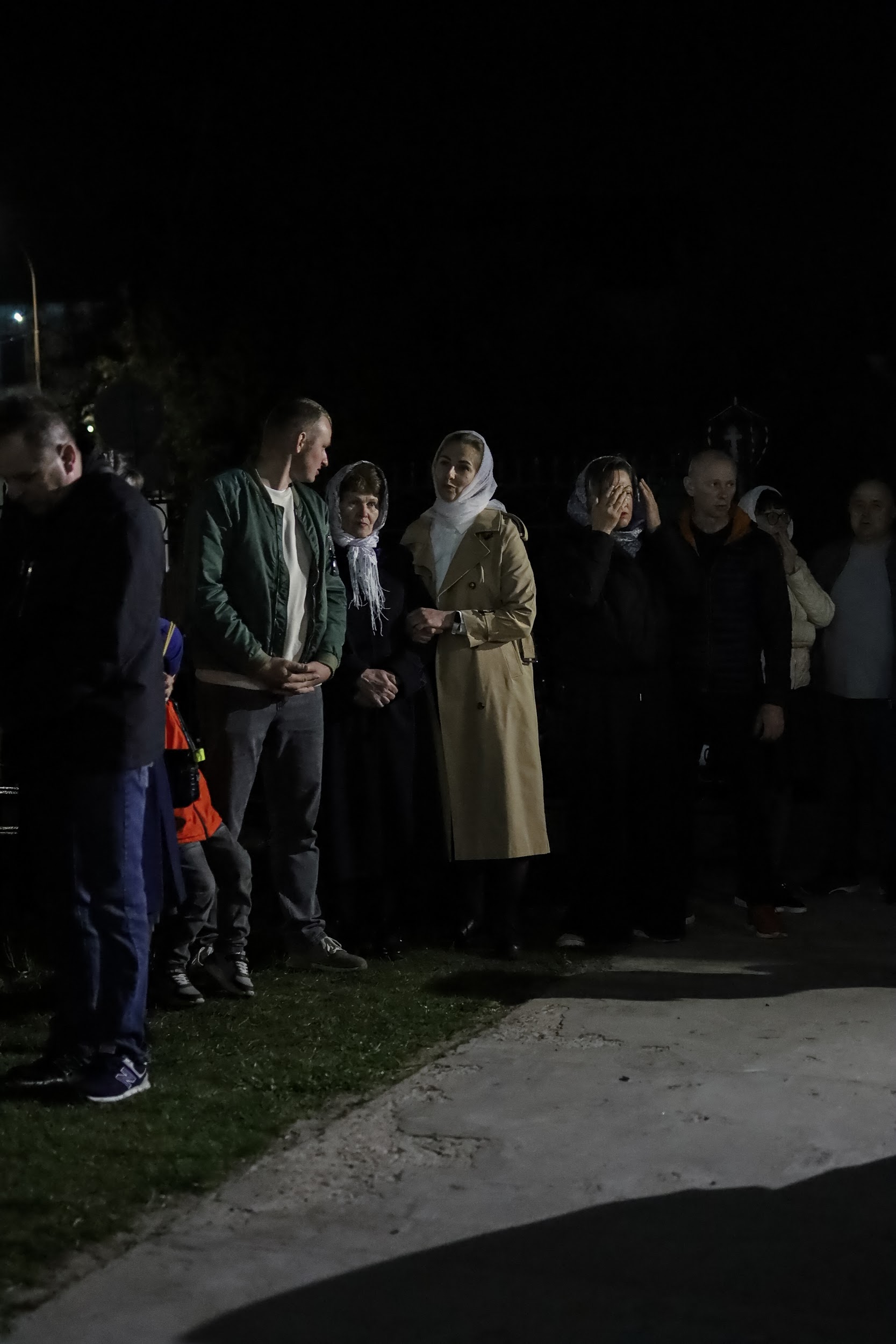 Священнослужители и прихожане молились за пасхальными ночными богослужениями (полунощница, крестный ход, утреня и Литургия святителя Иоанна Златоуста). Настоятель прихода протоиерей Димитрий Сёмуха прочитал «Слово огласительное святителя Иоанна Златоуста на Святую Пасху». Протодиакона Геннадий Малеев огласил Пасхальное послание Святейшего Патриарха Кирилла архипастырям, пастырям, монашествующим и всем верным чадам Русской Православной Церкви.