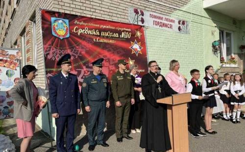 Клирики Свято-Троицкого собора г. Слонима приняли участие в торжественных линейках, в которых являются духовными кураторами. Иерей Сергий Ярмолович посетил ГУО «Средняя школа №10 им. В.И. Пеленицына г. Слонима», иерей Николай Савицкий - ГУО "Гимназия №1 им. Ф.М. Синичкина г. Слонима", иерей Иоанн Нудьга - ГУО "Средняя школа №5 г. Слонима".