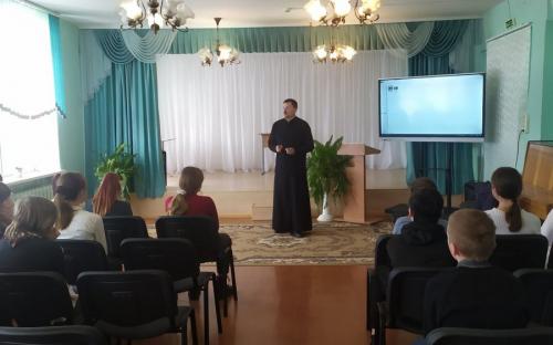 Священнослужитель рассказал учащимся о понятии «буллинг», как форме проявления жестокости и к чему это может привести. Кроме того, совместно со школьниками обсудили основные формы защиты если кому-либо проявляют жестокое поведение. Выступление сопровождалось показом видеороликов, что способствовало более доступно раскрывать тему занятий.