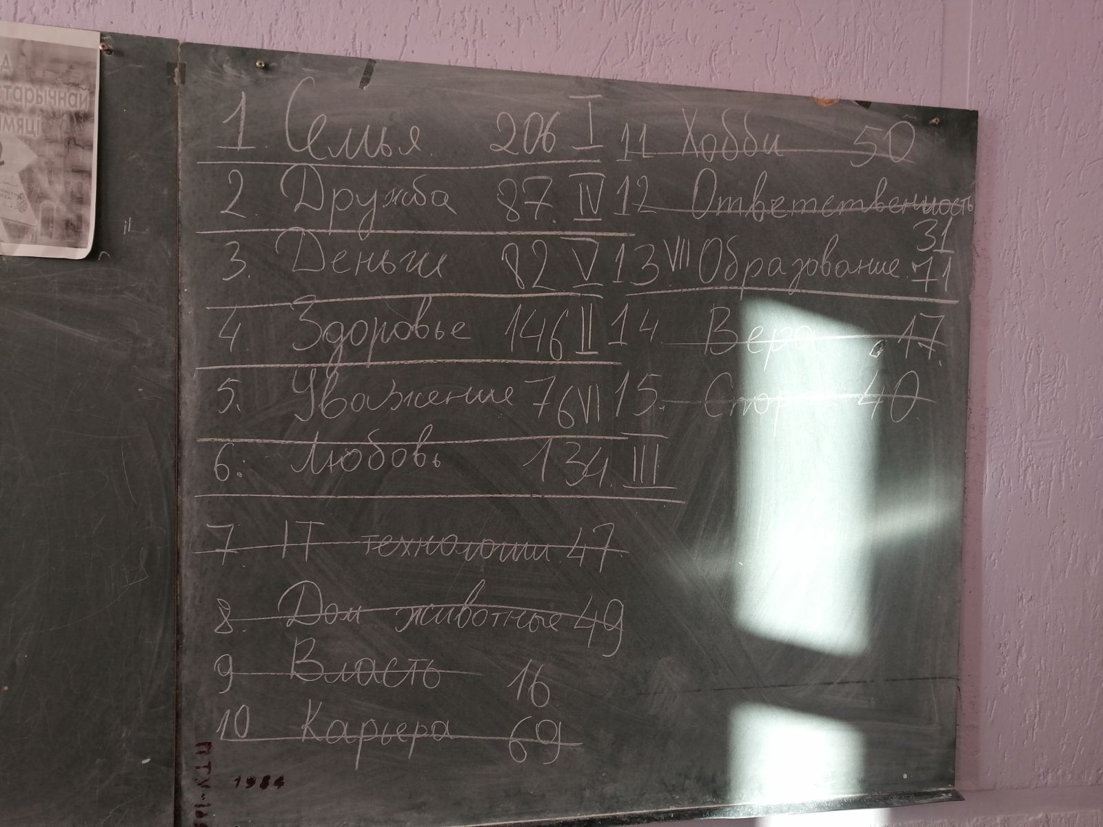 Интересным для всех стал небольшой аксиологический эксперимент, который показал, что особо ценно для группы студентов, как коллектива. Для многих данный эксперимент дал повод, чтобы еще раз задуматься, что для человека по-настоящему ценно, а что нет.