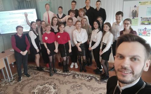 Иерей Николай Савицкий посетил 5-6 апреля учащихся 5 "В" и 8 "А" классов в гимназии № 1. Священник и ребята вместе разобрали различные жизненные ситуации, учились рассуждать и выбирать в неоднозначных ситуациях, поговорили о возможностях в нашей ежедневной жизни проявлять милосердие. Также через эксперимент напомнили друг другу, что счастливым можно стать, когда помогаешь своему ближнему и даришь ему радость.