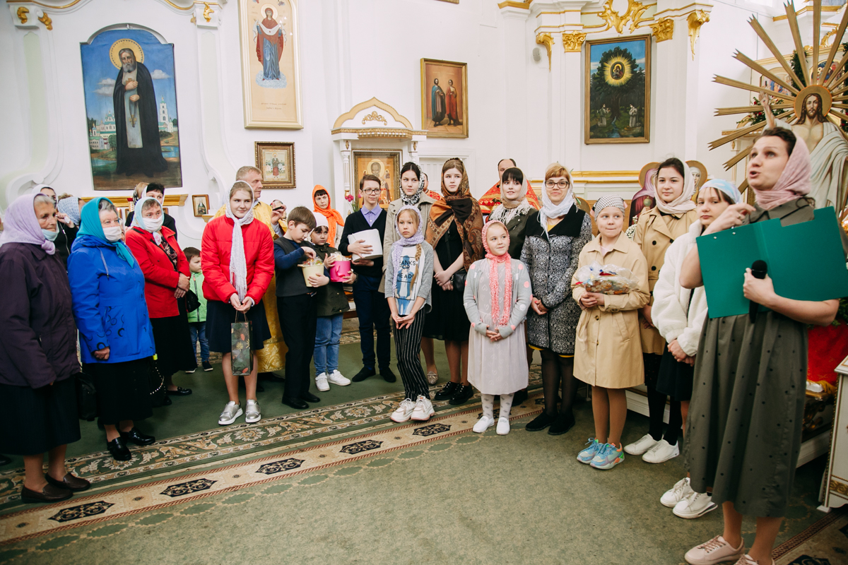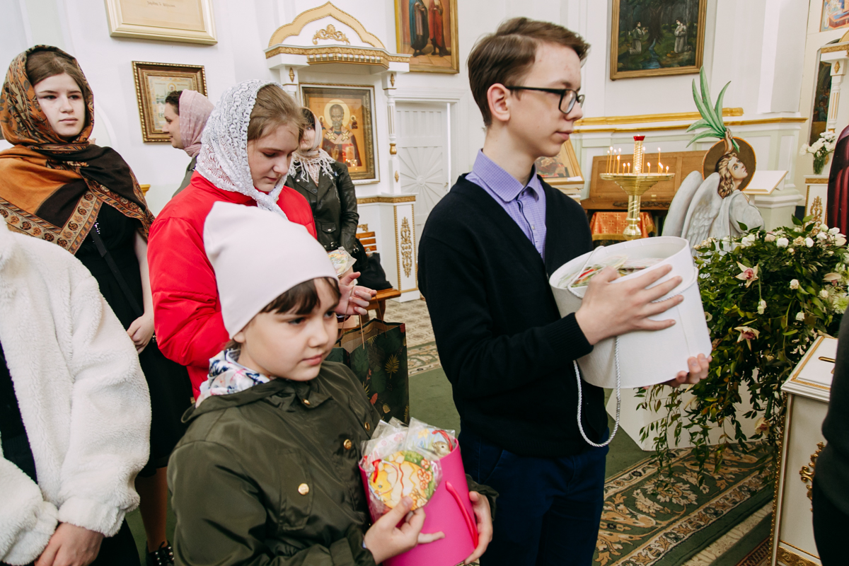 Воспитанники приходской воскресной школы вместе с преподавателями и родителями подготовили для всех музыкальное поздравление, одно из которых исполнили вместе со всем храмом. После поздравления каждому были вручены пасхальные сувениры, деланные своими руками.