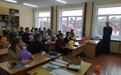 На протяжении с 12 по 19 апреля 2021 года клирик Свято-Троицкого собора иерей Николай Савицкий посещал гимназию №1.
