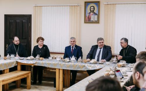 Поводом для общения стало обсуждение проекта изменения Основного закона государства. Лектор озвучил основные направления обсуждаемых изменений, после чего священнослужители смогли задать свои интересующие вопросы и получить ответы.