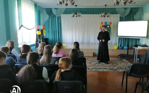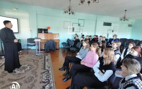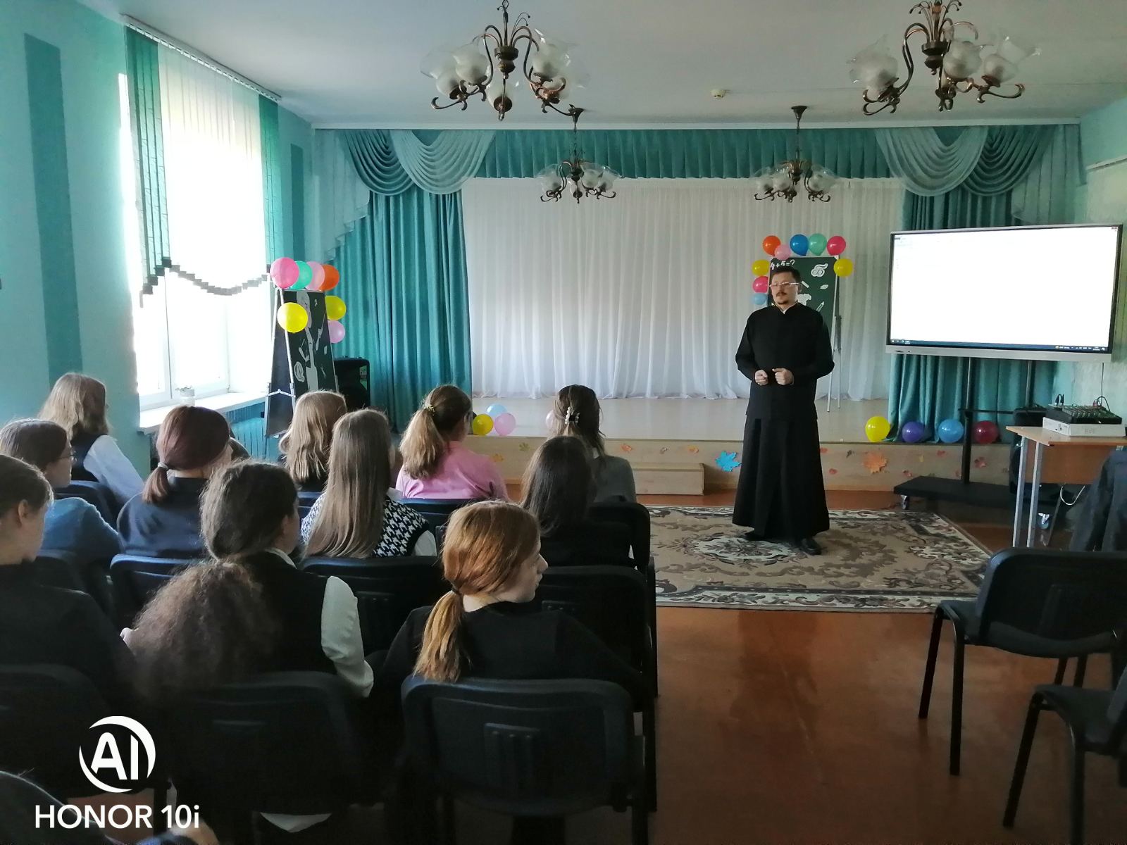 В ходе встречи священнослужитель рассказал об истории приближающегося праздника Покрова Пресвятой Богородицы и отмечаемого в этот же день Дня матери. Учащимся для просмотра были предложены видеоролики, которые очень хорошо помогают понять силу материнской любви.