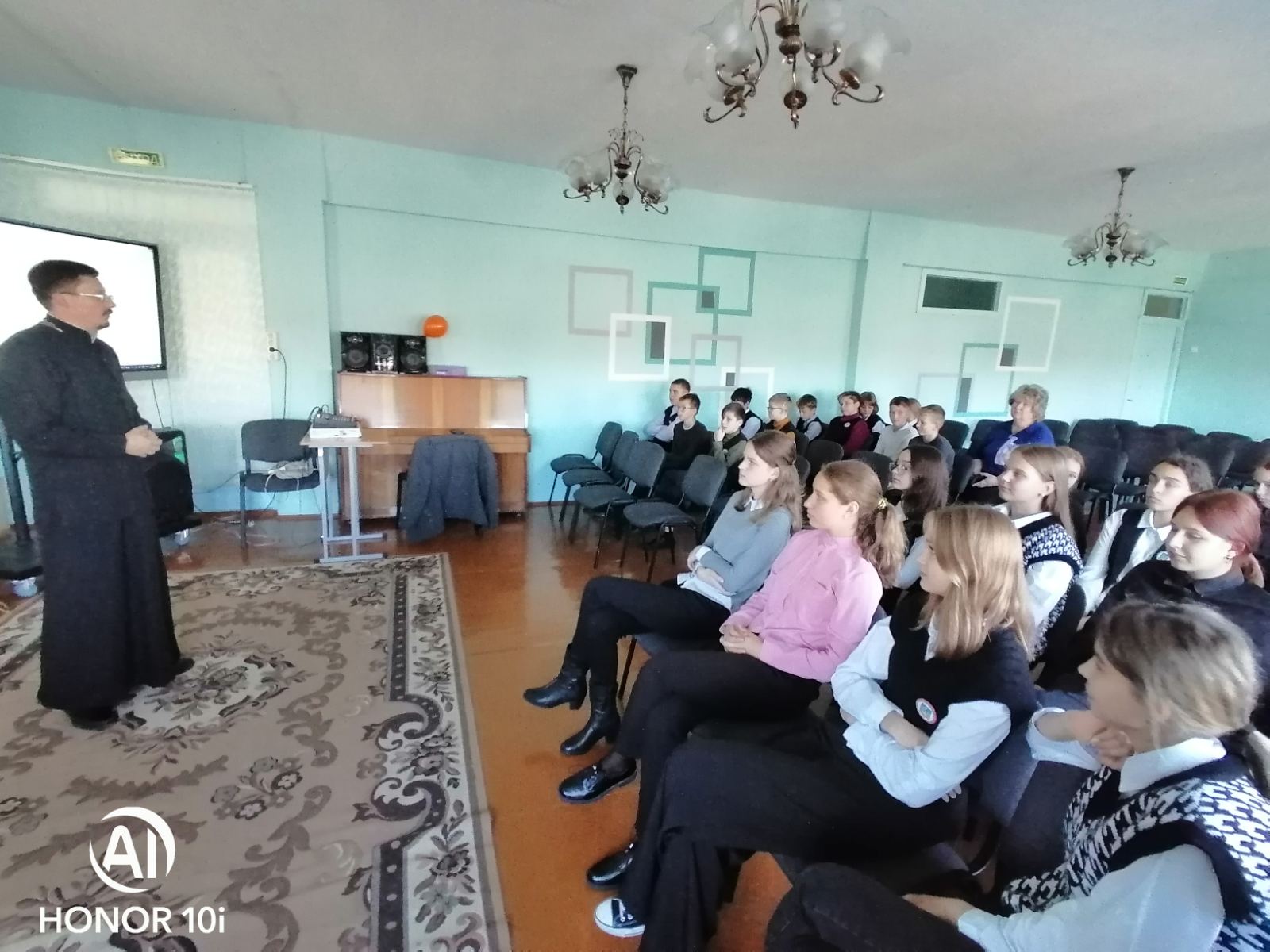 10 октября 2022 года в средней школе № 10 города Слонима состоялась встреча учащихся 7-8 классов с клириком Свято-Троицкого собора иереем Сергием Ярмоловичем на тему: «Великая сила материнской любви».